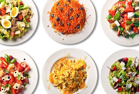 помидоры, перец болгарский, куриная грудка копченая, пекинская капуста, соус, зелень