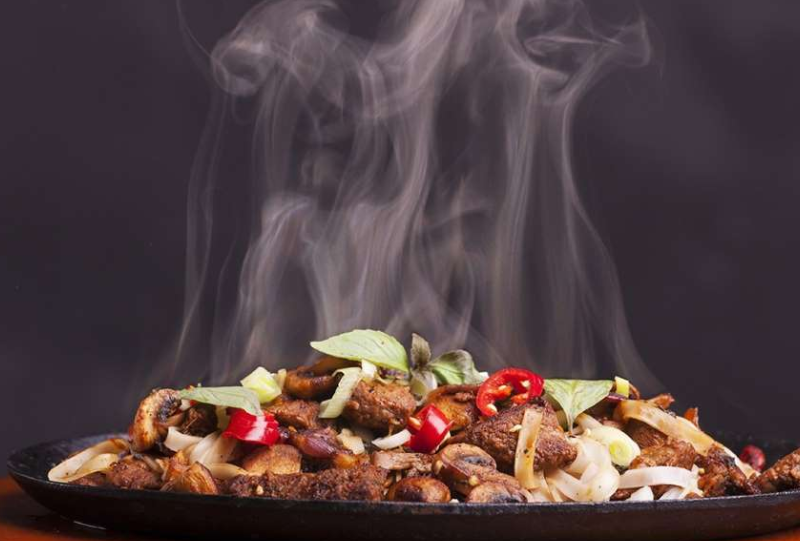 говядина, лук, шампиньоны, перец болгарский, специи, зелень, соус Чен-Ли-Сон